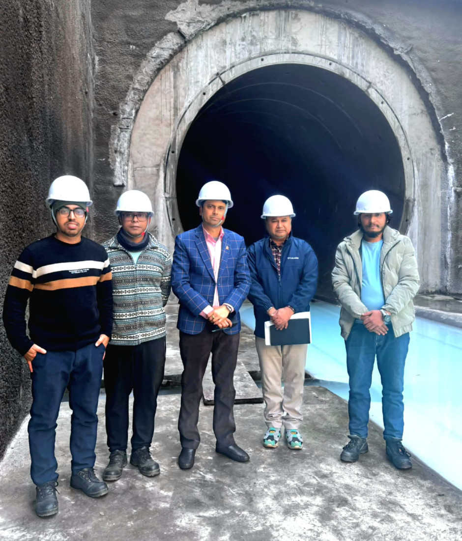 मिति २०८१ साल फागुन १७ गते सुरनकोशी मरिन डाइभर्सन बहुउद्देश्यीय परियोजनाको निमार्णाधिन सुरुङ्गको अनुगमन।