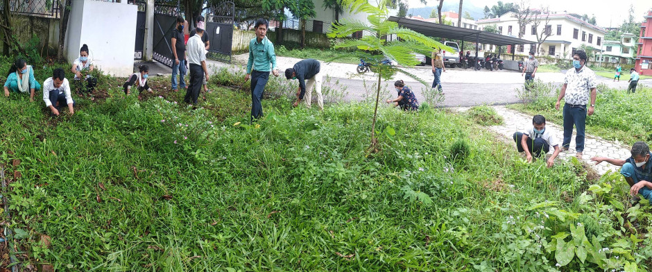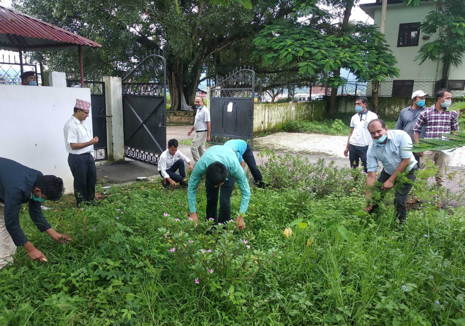 कार्यालय परिसरको सरसफाइ गर्दै श्रीमान् प्रमुख जिल्ला अधिकारी लगायत कर्मचारीहरु