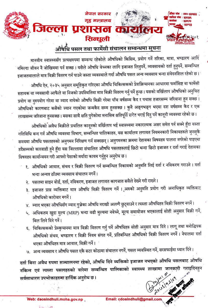 जिल्ला प्रशासन कार्यालय सिन्धुलीबाट जारी सूचना ।