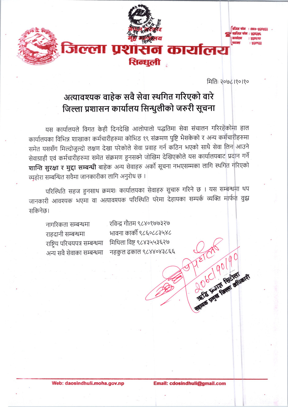अत्यावश्यक वाहेक सवै सेवा स्थगित गरिएको वारे जरुरी सूचना