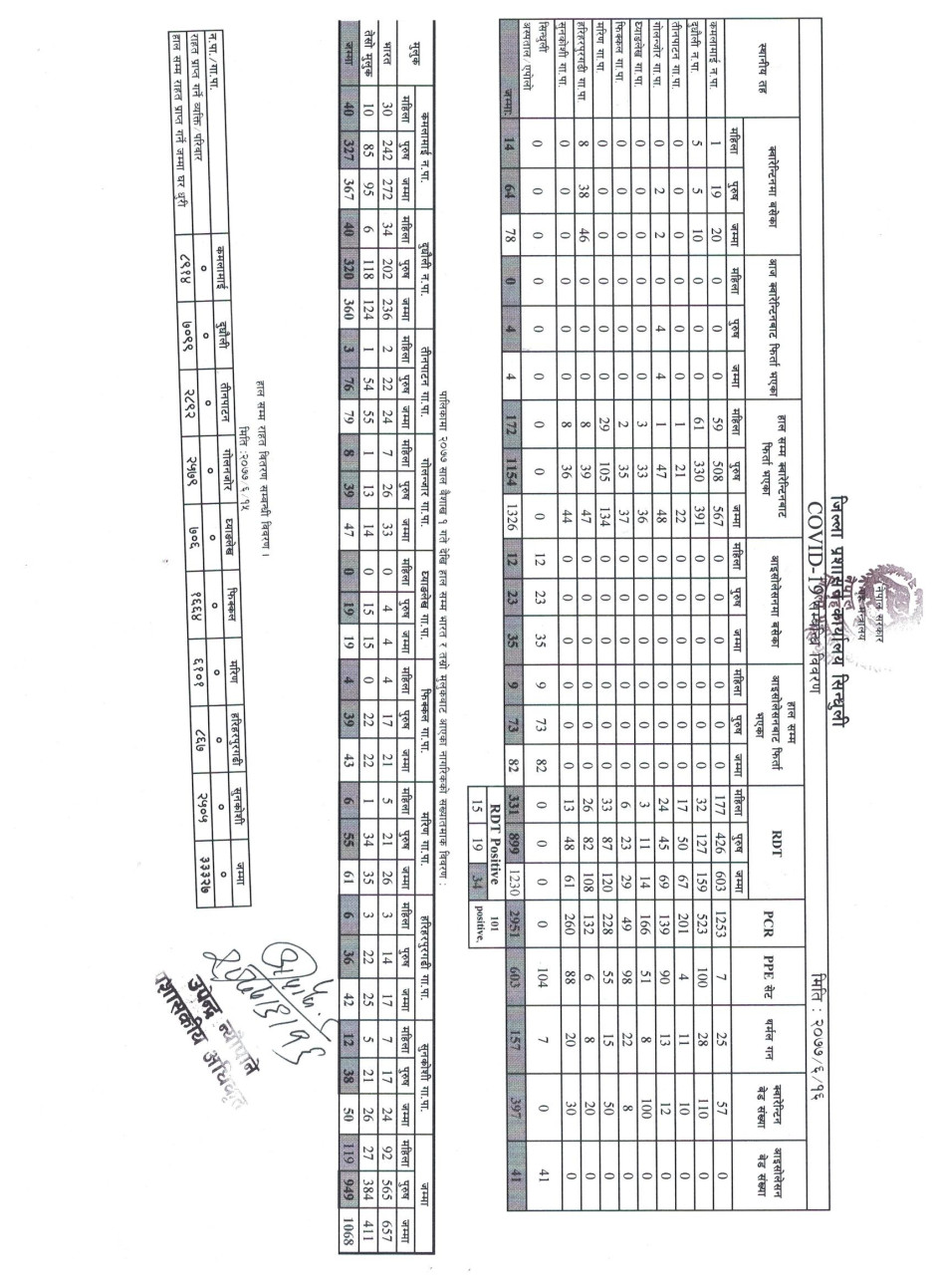 सिन्धुली जिललामा नयाँ भेरिएन्ट सहितको कोभिड-१९ अवस्था (२०७८/०१/२६)