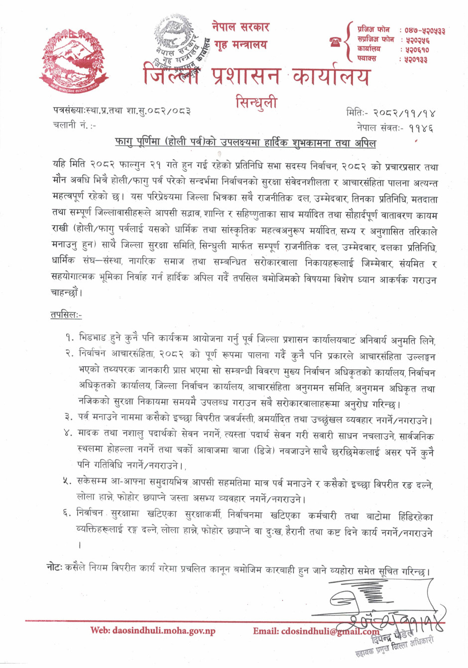 © सर्वाधिकार सुरक्षित जिल्ला प्रशासन कार्यालय, सिन्धुली