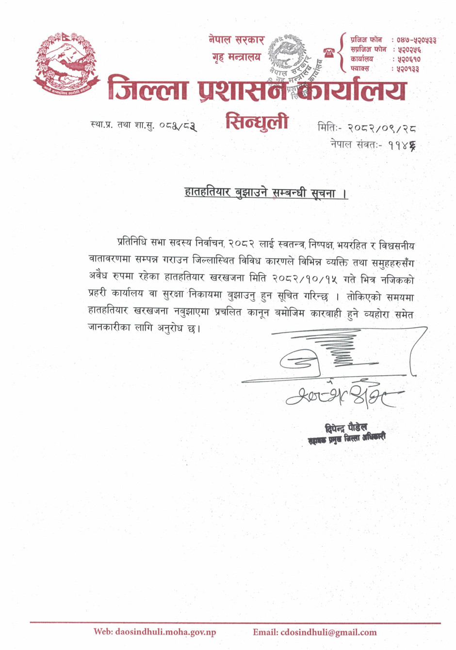 हातहतियार बुझाउने सम्बन्धी सूचना !!