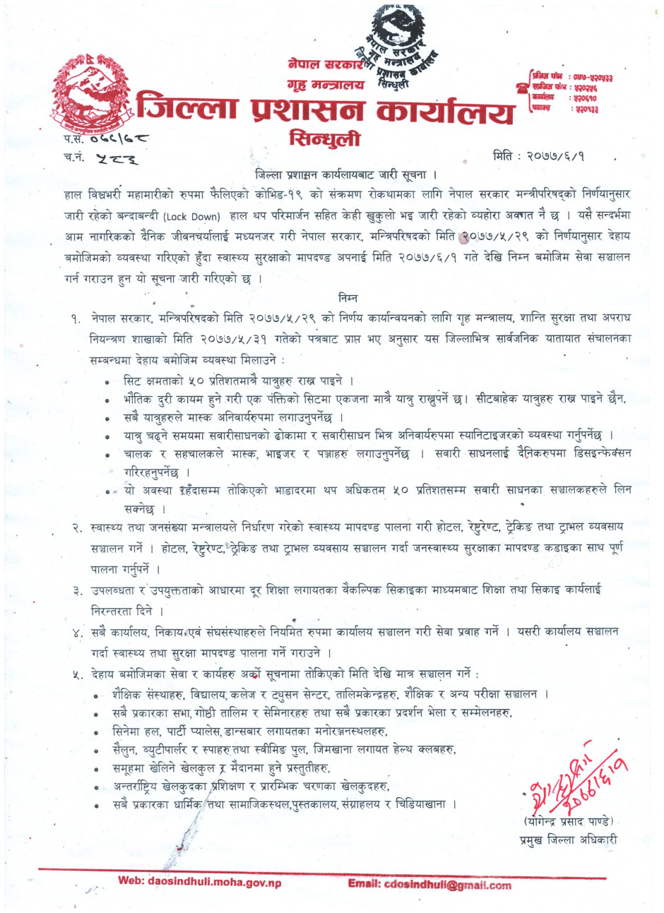 जिल्ला प्रशासन कार्यालय, सिन्धुलीबाट मिति २०७७/३/१२ मा जारी गरीएको सूचना