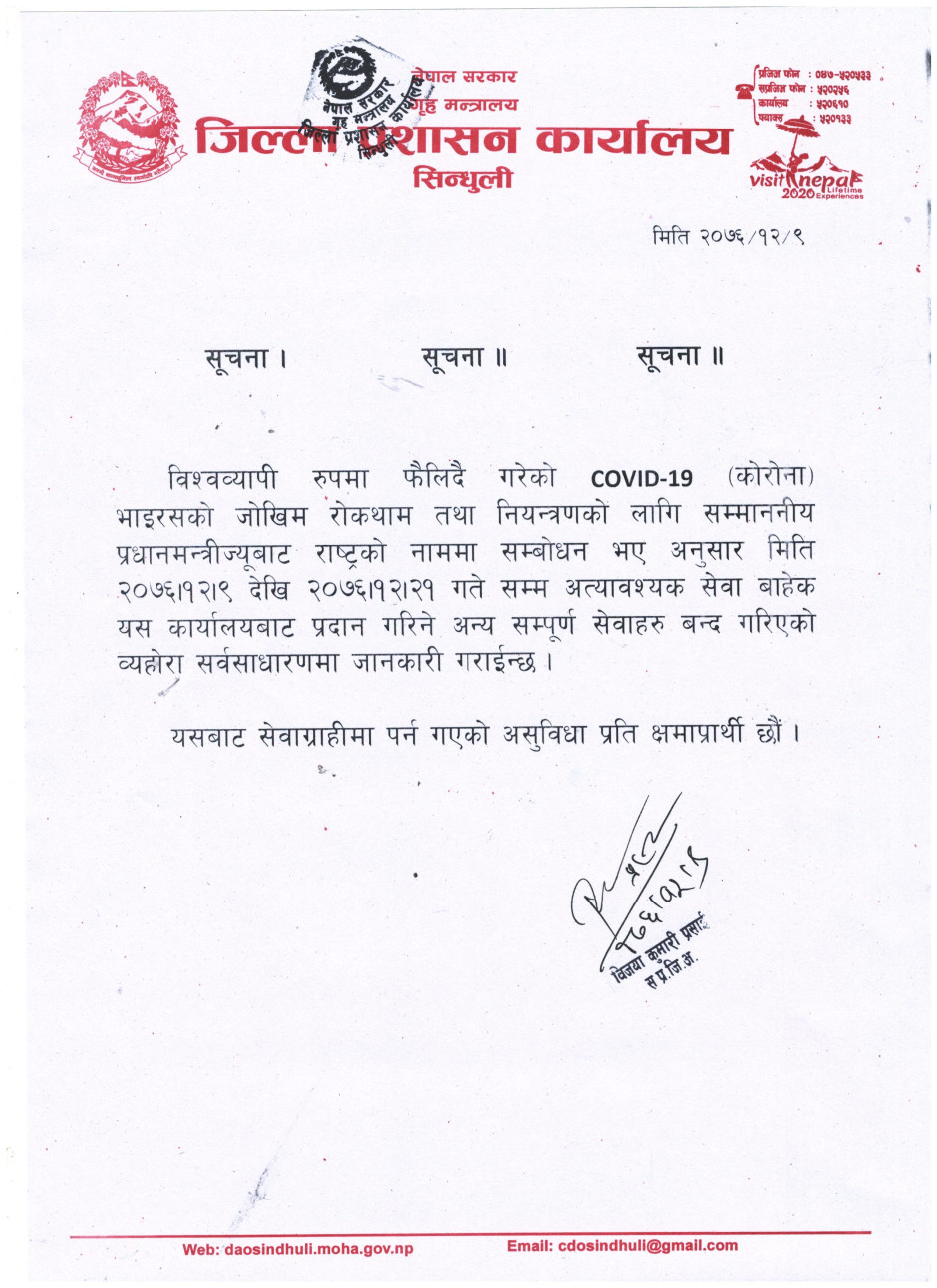 जिल्ला प्रशासन कार्यालयबाट जारी सूचना ।