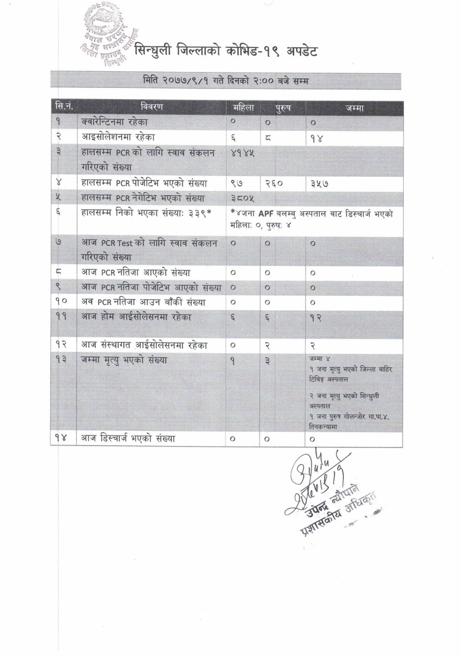 कोभिड १९ दैनिक अपडेट (२०७७।९।१)