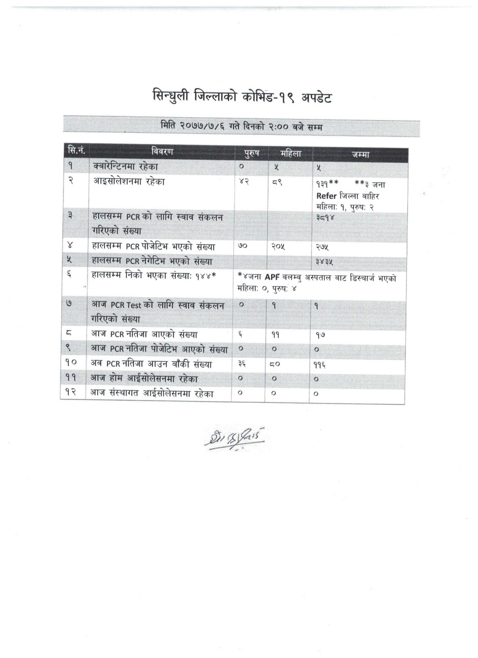 कोभिड १९ दैनिक अपडेट (२०७७।७।६)