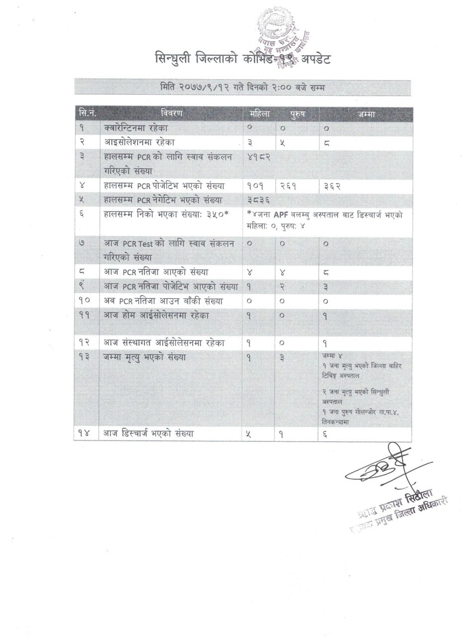 कोभिड १९ दैनिक अपडेट (२०७७/९/१२)