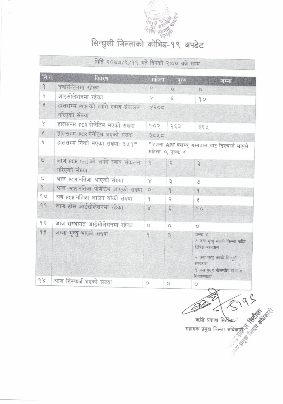कोभिड १९ दैनिक अपडेट (२०७७/९/१९)