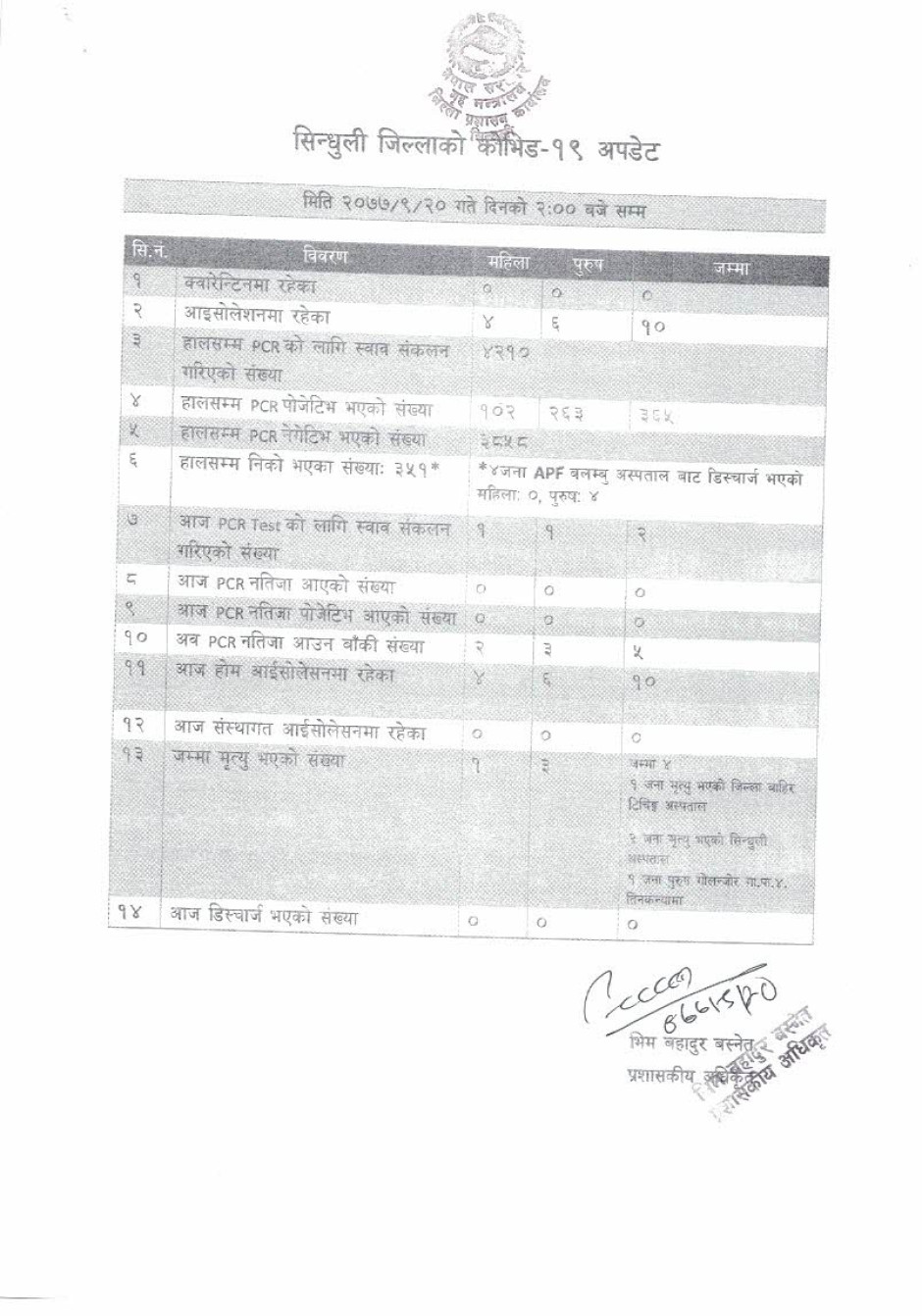 कोभिड १९ दैनिक अपडेट (२०७७।९।२०)