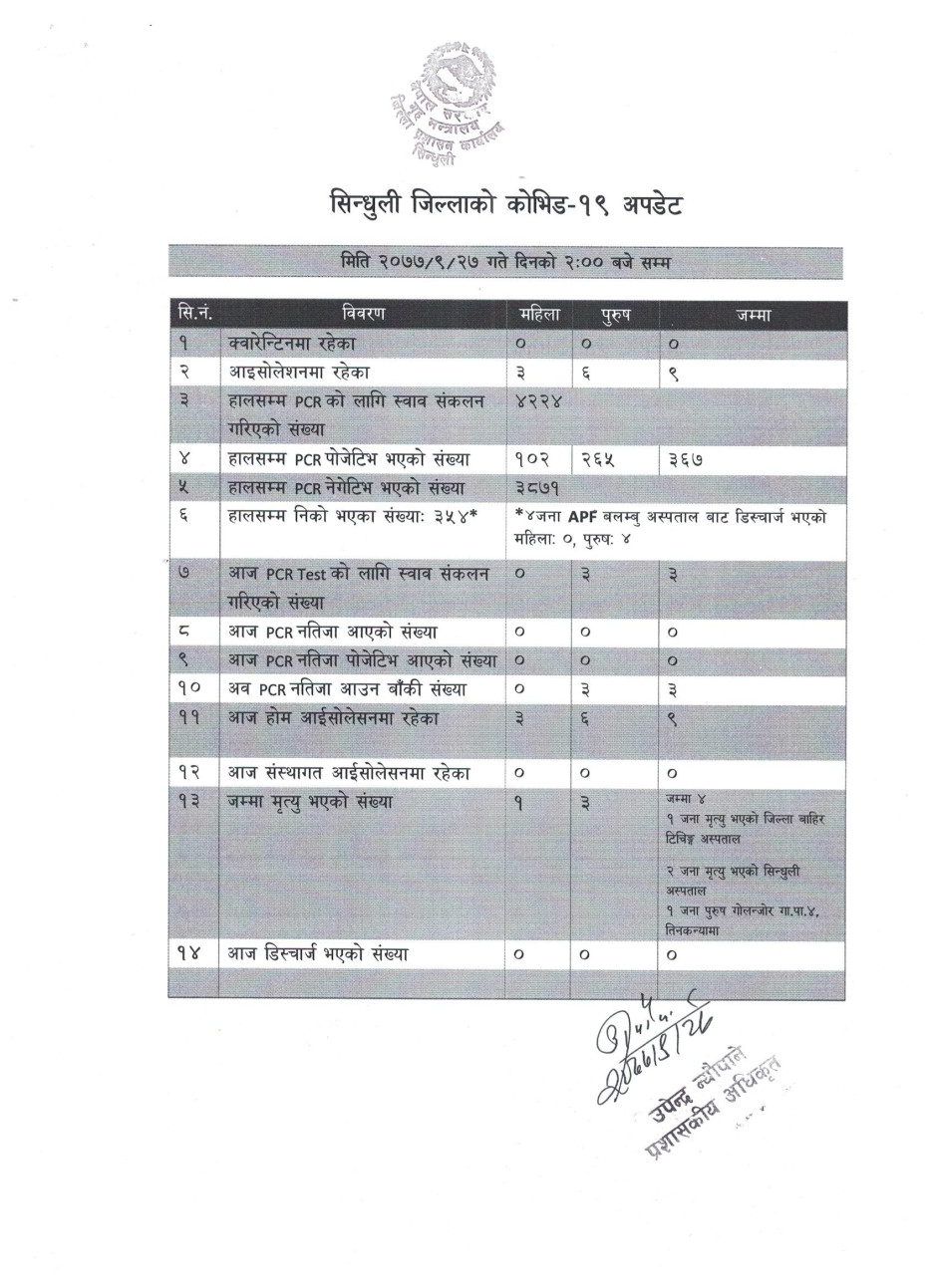 कोभिड १९ दैनिक अपडेट (२०७७।८।२७)