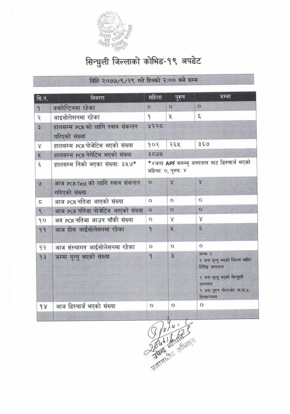 कोभिड १९ दैनिक अपडेट (२०७७।९।२९)
