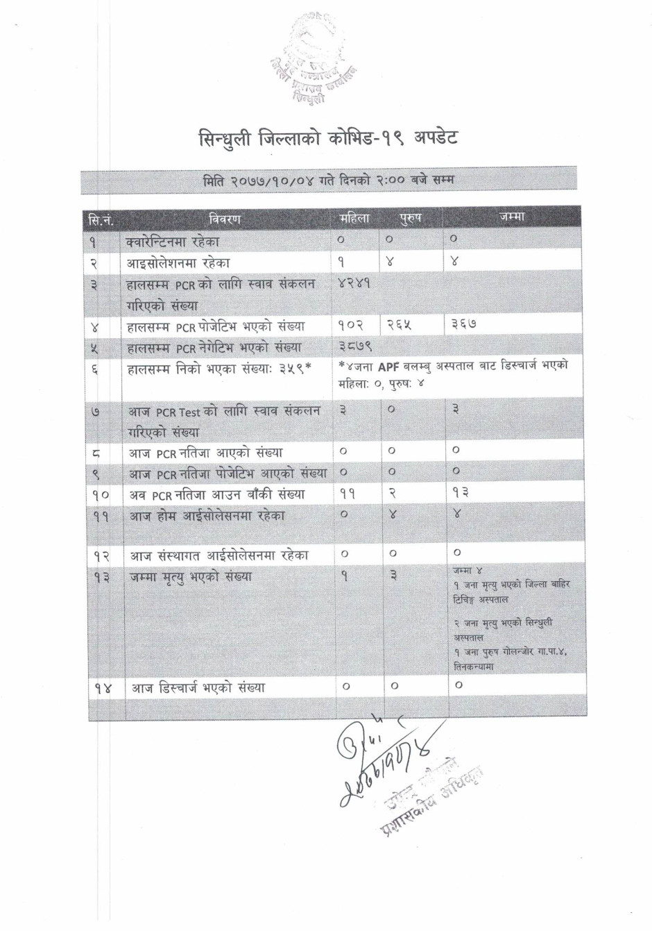 कोभिड १९ दैनिक अपडेट (२०७७/१०/०४)