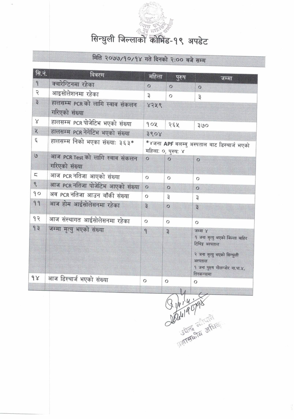 कोभिड १९ दैनिक अपडेट (२०७७।१०।१४)