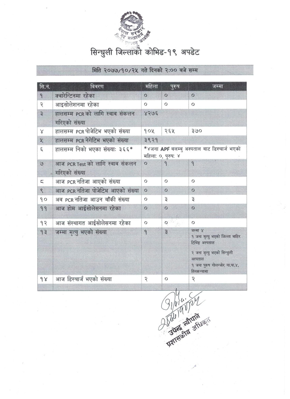 कोभिड १९ दैनिक अपडेट (२०७७।१०।२५)