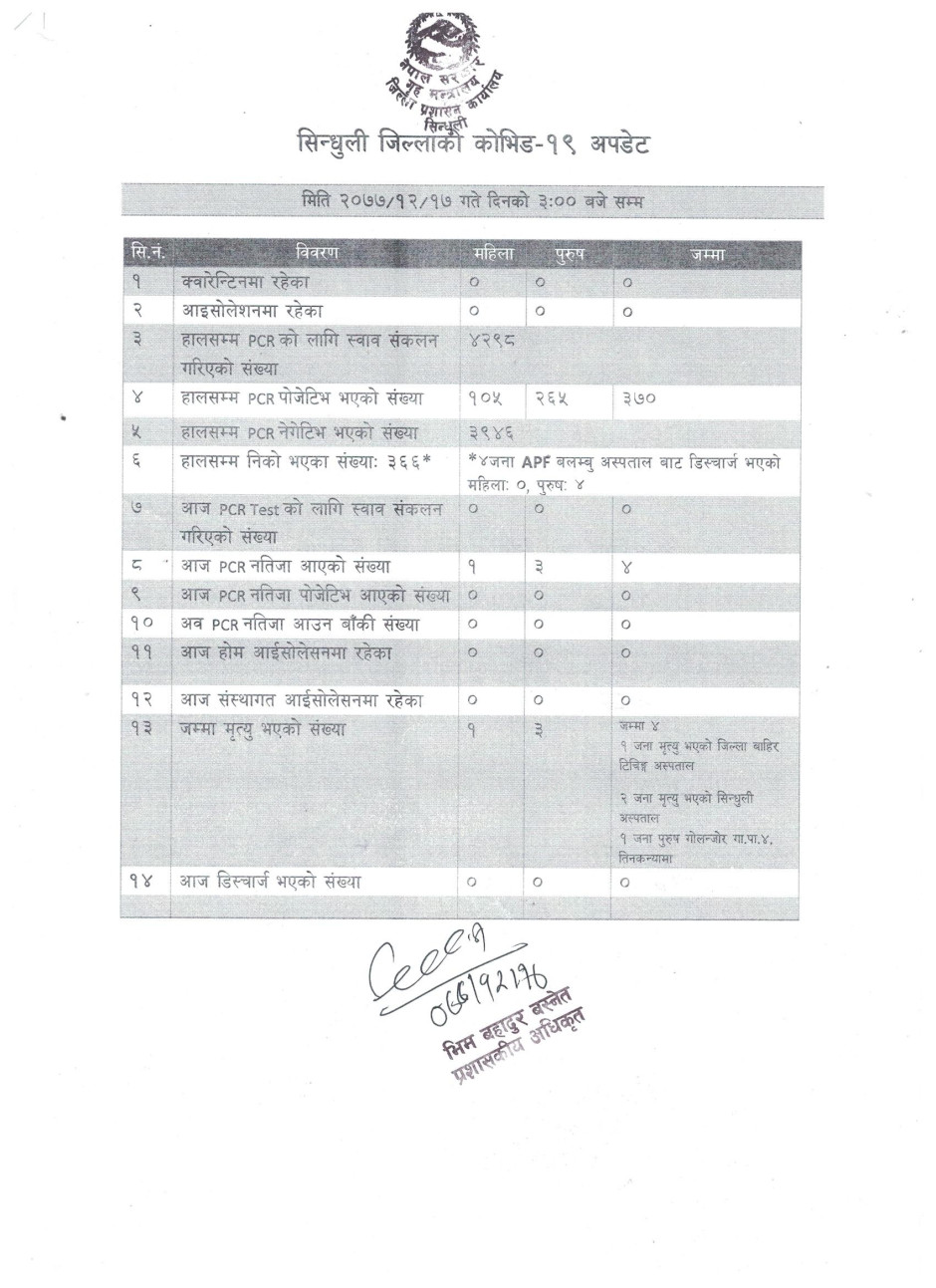 कोभिड १९ दैनिक अपडेट (२०७७/१२/१७)