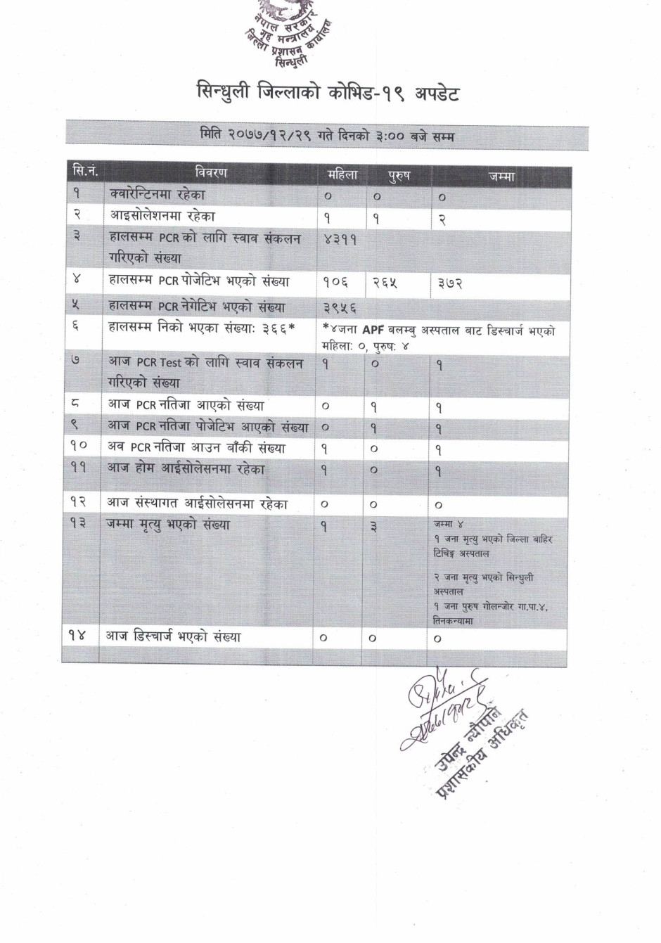 कोभिड-१९ दैनिक अपडेट (२०७७/१२/२९)
