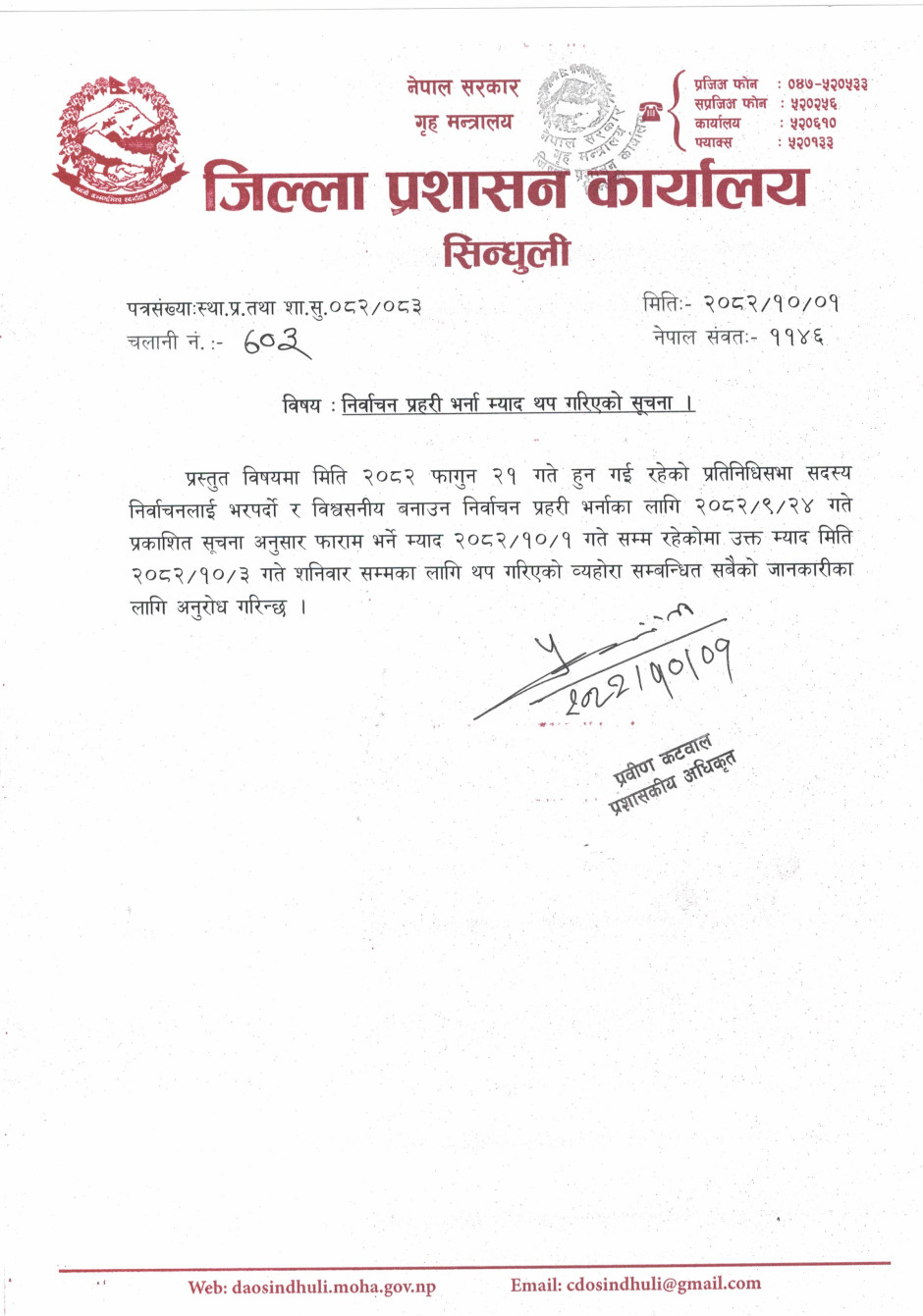 निर्वाचन प्रहरी भर्ना म्याद थप गरिएको सूचना !!