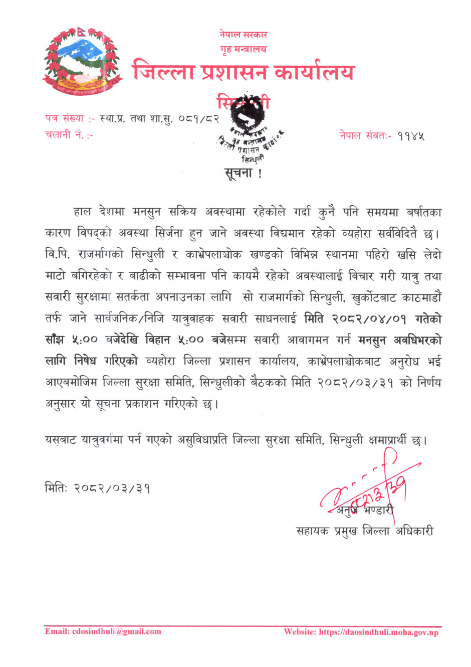 सवारी_आवागमन_निषेध_गरिएको_सम्बन्धि_सूचना.jpg तस्बिर : वि.पि. राजमार्गमा सवारी आवागमन सम्बन्धी सूचना
