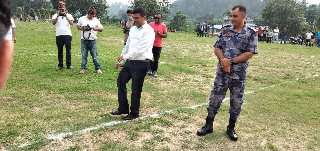 प्रमुख जिल्ला अधिकारी श्री रमेश न्यौपानेबाट उद्योग बाणिज्य संघ सिन्धुलीको ५४ औं स्थापना दिवसको उपलक्षमा जनप्रतिनिधि र उद्योग बाणिज्य संघका पदाधिकारीवीचको मैत्रीपूर्ण फुट्बल खेलको मदुद्घाटन ।