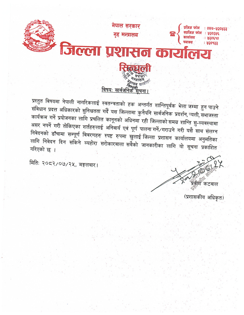 © सर्वाधिकार सुरक्षित जिल्ला प्रशासन कार्यालय, सिन्धुली