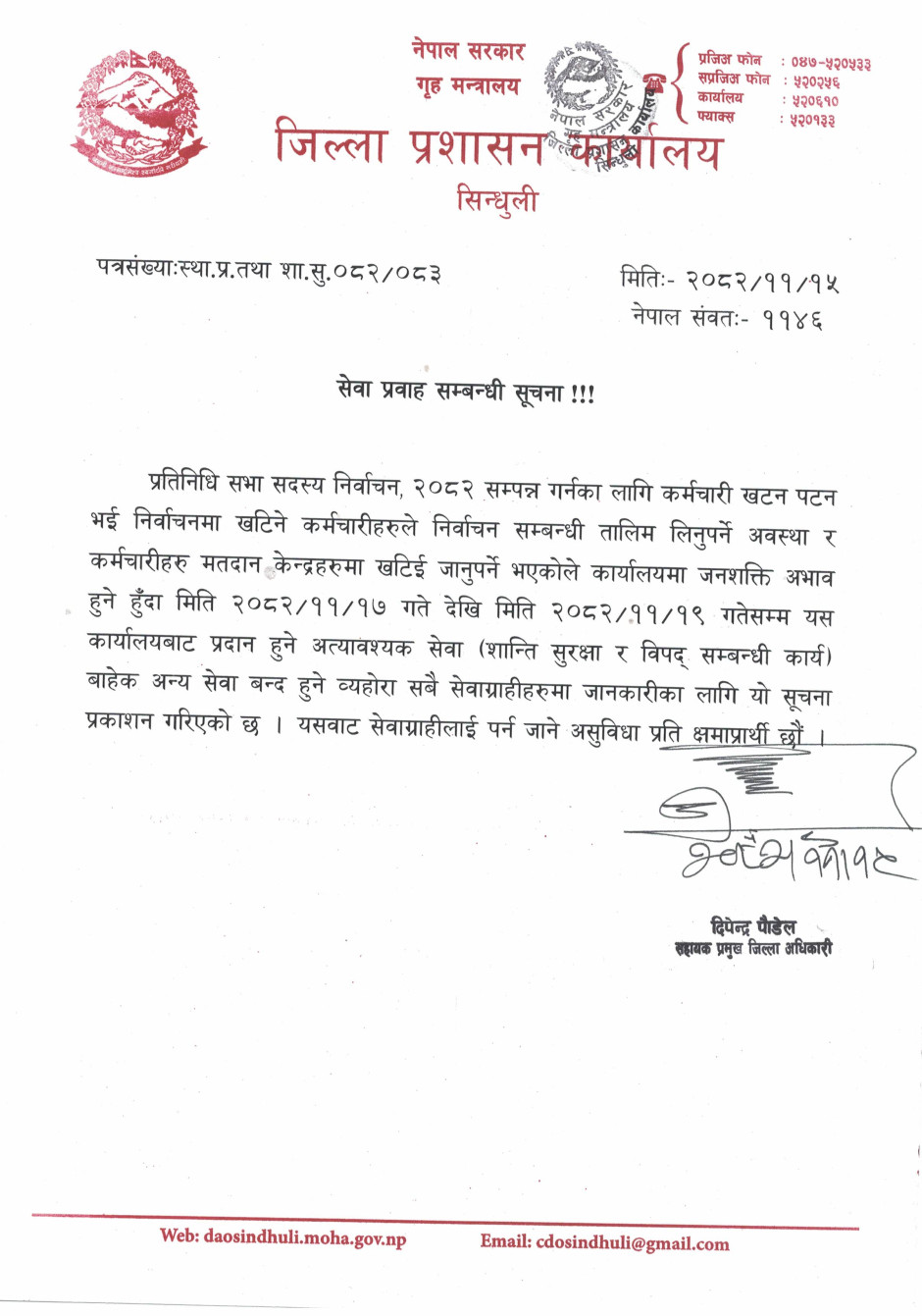 © सर्वाधिकार सुरक्षित जिल्ला प्रशासन कार्यालय, सिन्धुली