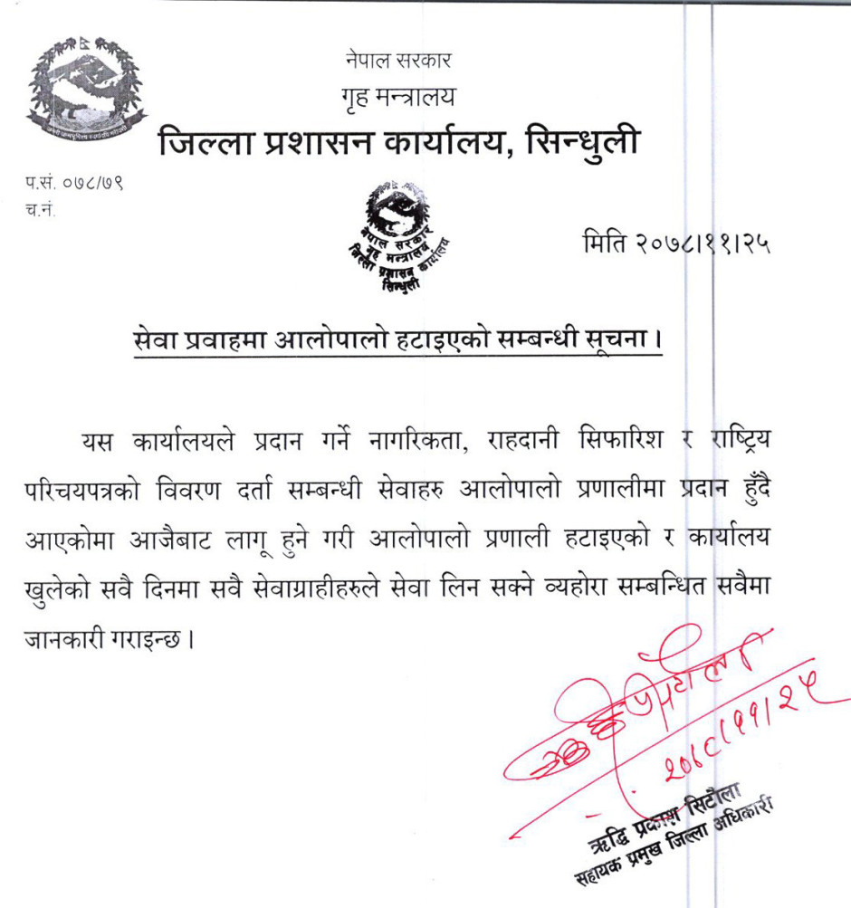 सेवा प्रवाहमा आलाेपालाे प्रणाली हटाइएको ।