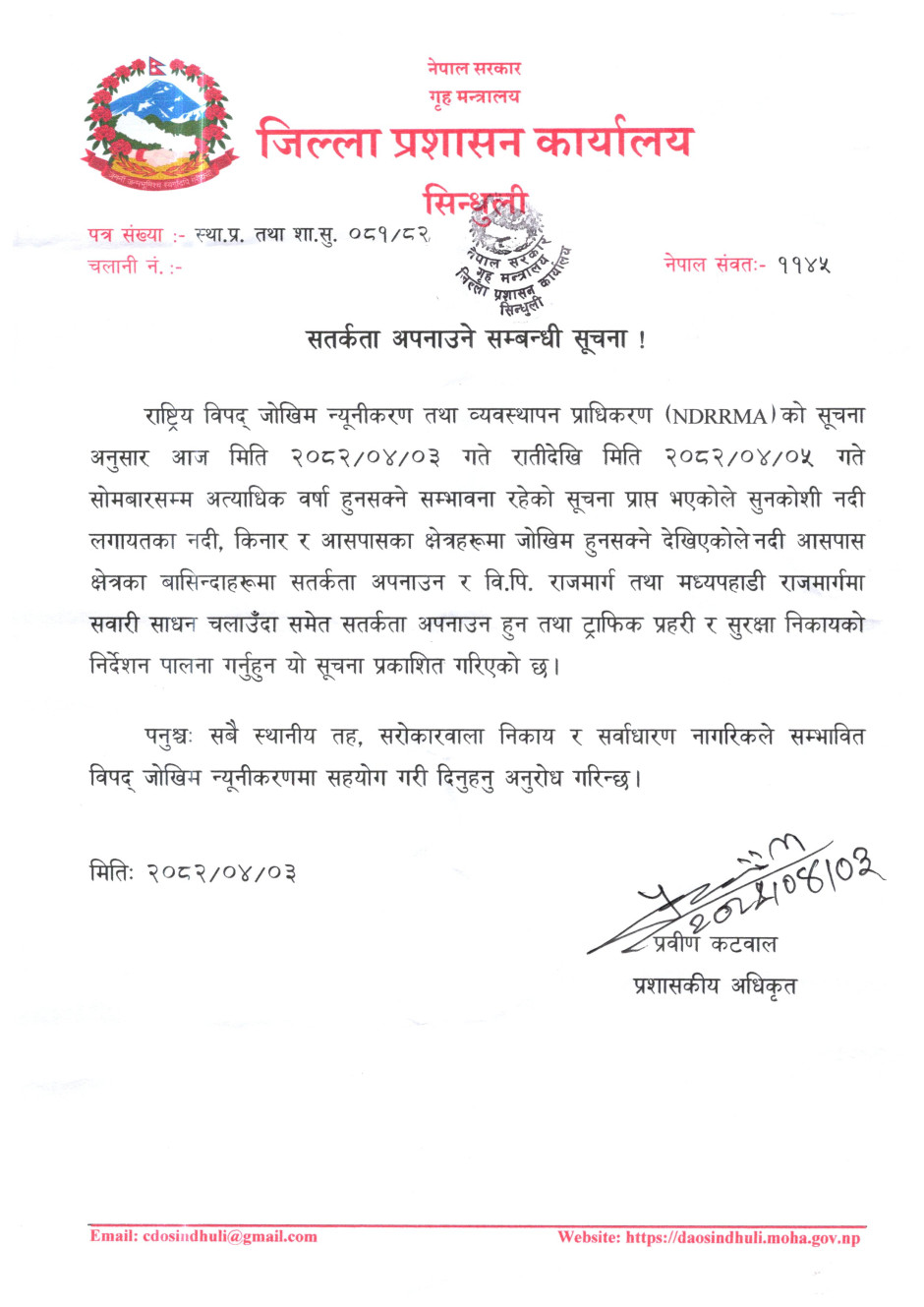 तस्बिर : सतर्कता अपनाउने सम्बन्धी सूचना !