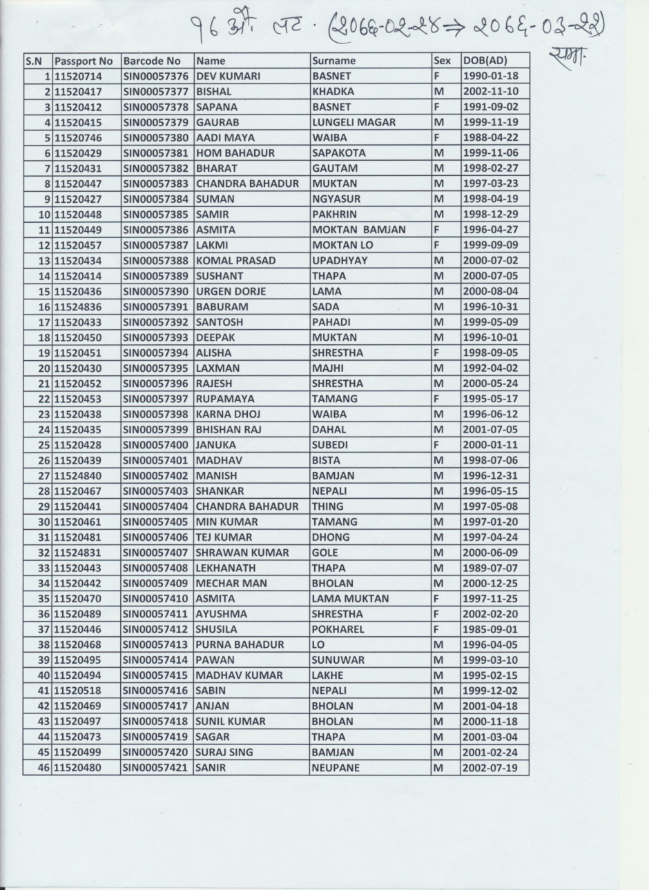 तयारी राहदानी प्राप्त भएकाे सूचना !!! (२०७६।०४।२१) १७ औ लट (२०७६/०२/२४-२०७६/०३/२२)