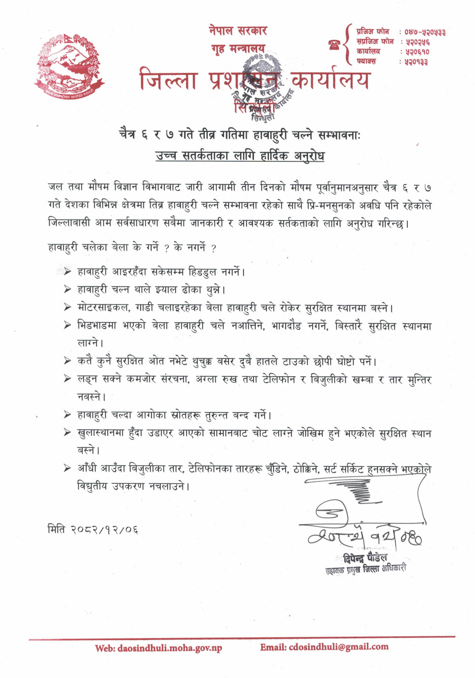 © सर्वाधिकार सुरक्षित जिल्ला प्रशासन कार्यालय, सिन्धुली